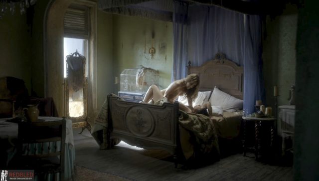 To name a male-on-female sex scene with Jessica Parker Kennedy is an impossibility because unless my memory is absolutely the worst, there are no such scenes. Instead, all the sex scenes we’ve seen, including this one, with Parker’s large titties, show females next to her. This is a slightly brighter version of an “original” vision, which I’ll also show you.