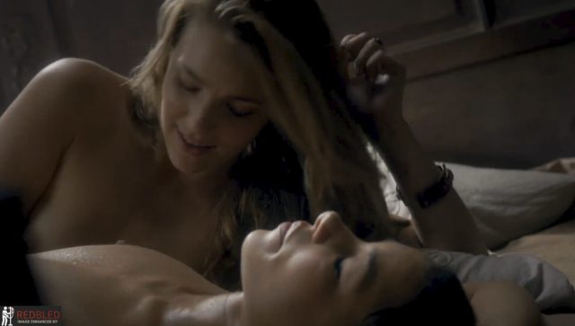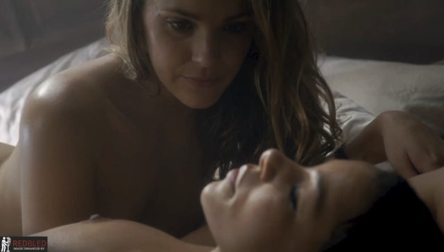 There are many different versions of Jessica Parker Kennedy’s lesbian scene: brighter, darker, more colorful, with different color settings, etc. We’ve picked a few different takes, just so your cravings for celeb nudes are satisfied, but it’s mostly all about two pairs of tits, some invisible clits, and female scissoring. Welcome to Hollywood! I’ve heard during GOT filming, producers kept pressuring celebs to go full frontal, so hopefully, Jessica Parker Kennedy wasn’t forced to do anything she didn’t want to.